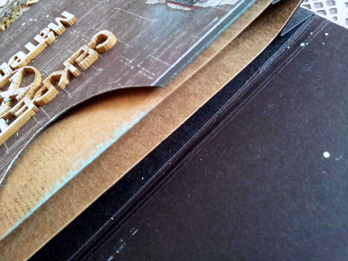 Я кроме скрап-бумаги использовала немного штампинга,брызг и тонировку воском и патиной: